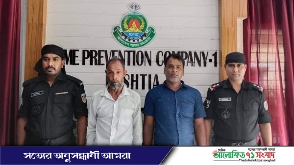 র্যাব-১২, সিপিসি-১, কুষ্টিয়া ক্যাম্পের কোম্পানী কমান্ডার স্কোয়াড্রন লীডার মোহাম্মদ ইলিয়াস খান এর নেতৃত্বে একটি চৌকষ আভিযানিক দল অদ্য ০৫ জুন ২০২২ তারিখ দুপুর ১২:১০ ঘটিকার সময় কুষ্টিয়া জেলার কুমারখালি উপজেলার আলাউদ্দিন আহমেদ ডিগ্রী কলেজের অর্থনীতি বিভাগের সহকারী অধ্যাপক মোঃ তোফাজ্জেল হোসেন এর হাতের কব্জি কর্তন মামলার এজাহারনামীয় আসামী ১। আমজাদ (৫৫), পিতা-মৃত আজমত আলী, ২। হাসানুজ্জামান চাল্লু (৪০), পিতা-মৃত গনি উদ্দিন, উভয় সাং-শালঘর মধুয়া, থানা-কুমারখালী, জেলা-কুষ্টিয়াকে কুষ্টিয়া জেলার সদর থানাধীন সাদ্দাম বাজার এলাকা হতে গ্রেফতার পূর্বক কুষ্টিয়া সদর থানায় হস্তান্তর করা হয়েছে। র্যাব-১২, সিপিসি-১, কুষ্টিয়া’র স্কোয়াড্রন লীডার মোহাম্মদ ইলিয়াস খান কোম্পানী কমান্ডার সাংবাদিকদের এ তথ্য নিশ্চিত করেন।