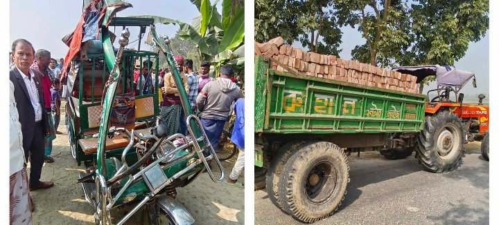 রাজশাহীর গোদাগাড়ী উপজেলার কেশবপুর গ্রামে গোদাগাড়ী টু কাঁকনহাট রোডের, মকবুল হোসেন এর বাড়ীর সামনে পাকা রাস্তায় আাজ শনিবার ৩০/১২/২৩ দুপুর অনুমান ১২.০০ টার দিকে ট্রাক্টর ও ব্যাটারি চালিত ইজি বাইক এর সংঘর্ষ হয়, এ সময় ঘটনাস্থলে একজন নারী নিহত হয়েছে।