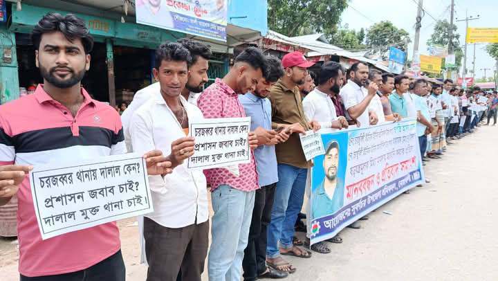 উপজেলা ছাত্রদলের সাবেক আহবায়ক আলী আহসান মোহাম্মদ তারেকের সঞ্চালনায় মানববন্ধনে বক্তব্য রাখেন, উপজেলা শ্রমিক দলের আহবায়ক মঞ্জুরুল আক্তার মঞ্জু, সদস্য সচিব আলমগীর হোসেন চৌধুরী, শ্রমিক দল ও মৎস্যজীবি দলের নেতৃবৃন্দসহ আরো অনেকেই। এ সময় বক্তারা বলেন, ফ্যাসিস্ট সরকারের আমলের মত এখনো চরজব্বর থানায় দালালের কার্যক্রম অব্যাহত রয়েছে, এসব দালালদের কারণে সাধারণ মানুষ প্রতিনিয়ত হয়রানির শিকার হচ্ছে,
