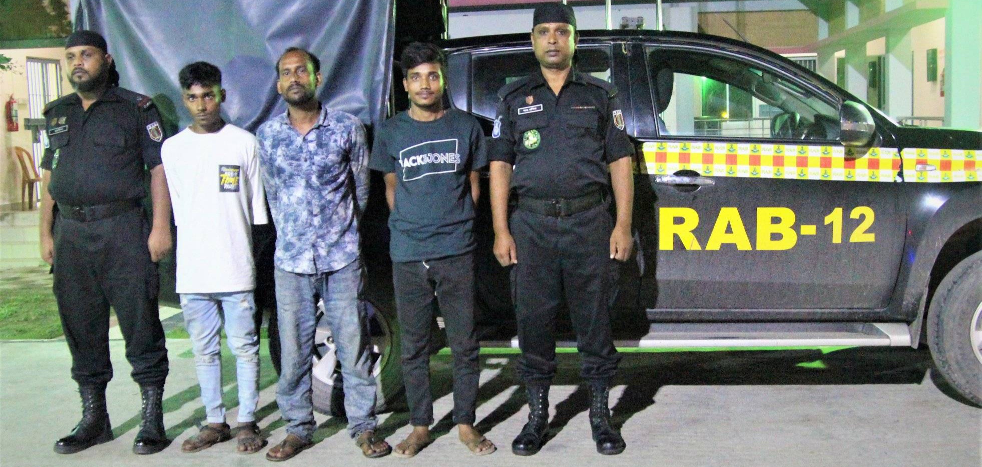 গ্রেফতারকৃত আসামীঃ ধৃত আসামী ১। মোঃ রমজান আলী (১৯), পিতা-সাত্তার আলী, সাং ঘোনাগানজানী, থানা-উল্লাপাড়া, ২। মোঃ মাসুদ রানা (২৯), পিতা-মোঃ ইব্রাহিম ইসলাম, ৩। মোঃ শফিকুল ইসলাম (২২), পিতা- মোঃ সুরমান আলী, উভয় সাং-হাটিপাড়া, থানা-সলঙ্গা, সর্ব জেলা- সিরাজগঞ্জ।