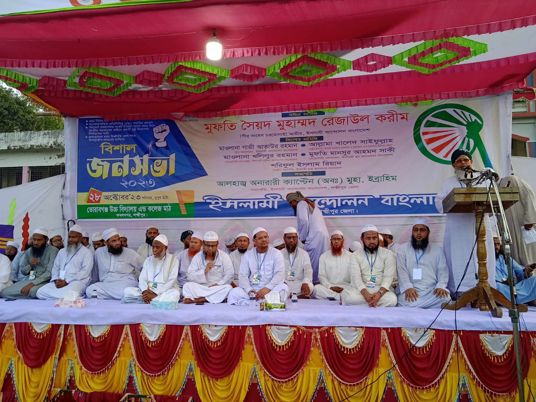 আজ শনিবার বিকেলে ইসলামী আন্দোলন বাংলাদেশ লক্ষ্মীপুর জেলা শাখার উদ্যোগে জেলা সভাপতি আলহাজ্ব অনারারী ক্যাপ্টেন (অব:) ইব্রাহিম এর সভাপতিত্বে প্রচার ও দাওয়াহ সম্পাদক মাওলানা মাহমুদুল হাসান এর সঞ্চালনায় কমলনগর ‘তোরাবগঞ্জ উচ্চ বিদ্যালয় এ্যান্ড কলেজ মাঠে আয়োজিত বিশাল জনসভায় প্রধান অতিথির বক্তব্যে এসব কথা বলেন।