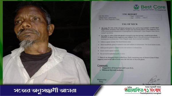 নিম্ববিত্ত পরিবারের গৃহকর্তা মোঃ আঃ কাদের (৬২) প্রায় ৮মাস ধরে গলার জটিল টিউমারে আক্রান্ত ।বাড়ী ঠাকুরগাঁও জেলার সদর থানা গ্রামঃ ইয়াকুবপুরের ,পোঃকালুক্ষেত্র ,১২ নং সালান্দর১নং ওয়ার্ডে উন্নত চিকিৎসা দ্রুত অপারেশনের জন্য আর্থিক সাহায্যের প্রয়োজন ।মোঃ আবদুল কাদের সল্প আয়ে এবং ধার দেনা করে ঔষুধ চালিয়েছেন।এখন তিনি অসহায় হয়ে পরেছেন। আর চিকিৎসার ব্যয়ভার বহন করা পরিবারের পক্ষে সম্ভব হচ্ছেনা।