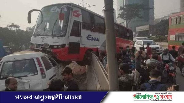 তিনি জানান, বাসটি এনা পরিবহনের। ঢাকা থেকে ময়মনসিংহ যাওয়ার পথে হোটেল লা মেরিডিয়ানের কাছে বাসটি নিয়ন্ত্রণ হারিয়ে সড়ক বিভাজক টপকে মাইক্রোবাসের সামনের অংশে উঠে যায়। এতে মাইক্রোটি ক্ষতিগ্রস্ত হয়। আহত হয়েছেন মাইক্রোবাসের চালক। মাইক্রোবাসটিতে আরও ৪ জন ছিলেন- তাদের কেউ আহত হননি।
