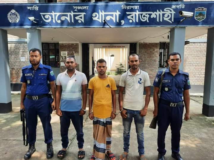 তানোর থানার অফিসার ইনচার্জ (ওসি) আব্দুর রহিম বলেন, শুক্রবার রাতে গ্রেপ্তাকৃত ৩ জনসহ আরো ২/৩ জন সিএনজি নিয়ে বাধাইড় ইউপির শিকপুর গ্রামের দিয়াড়া পাড়ার আদিবাসী পল্লীতে গিয়ে পুলিশ পরিচয় দিয়ে চাঁদা বাজি করছিলো।
