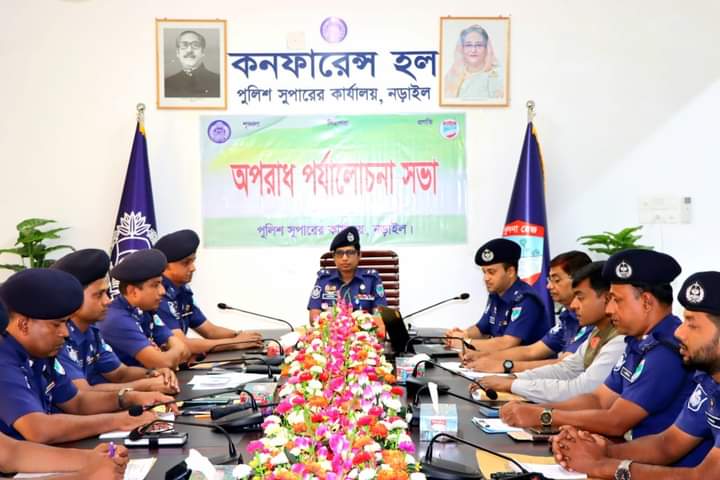 নড়াইল জেলা পুলিশের মাসিক অপরাধ পর্যালোচনা সভা অনুষ্ঠিত হয়েছে। ২০ জুলাই(রবিবার) সকাল ১১:৩০ ঘটিকায় পুলিশ সুপারের কার্যালয়ের সম্মেলন কক্ষে জুলাই/২০২৩ খ্রি: মাসের অপরাধ পর্যালোচনা সভা অনুষ্ঠিত হয়। উক্ত সভায় সভাপতিত্ব করেন,(মোসা:সাদিরা খাতুন) পুলিশ সুপার, নড়াইল অপরাধ পর্যালোচনা সভার শুরুতে পাওয়ার পয়েন্টের মাধ্যমে জেলার সার্বিক আইন-শৃঙ্খলা পরিস্থিতি ও অপরাধ চিত্র তুলে ধরেন মো:তারেক আল মেহেদী, অতিরিক্ত পুলিশ সুপার (ক্রাইম এন্ড অপস্), নড়াইল।