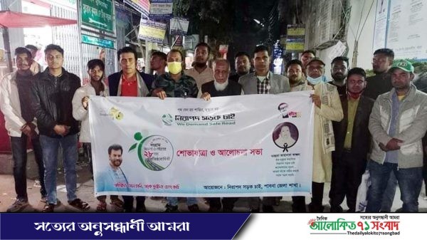 নিরাপদ সড়ক চাই (নিসচা) পাবনা জেলা শাখার সভাপতি খন্দকার গোলাম হাসনাইন কোয়েলের সভাপতিত্বে ও সাধারণ সম্পাদক কে.এম. মোখলেছুর রহমান রাসেলের পরিচালনায় আরও বক্তব্য রাখেন, মুক্তিযোদ্ধা সংসদ সন্তান কমান্ড পাবনা জেলা ইউনিটের সভাপতি লুৎফুল বারী, নিসচা পাবনা জেলা শাখার সহ-সভাপতি আব্দুল মান্নান ভূইয়া, মীর ফজলুল করীম বাচ্চু, সাংগঠনিক সম্পাদক গোলাম হাসনায়েন বিপ্লব, প্রচার সম্পাদক ফজলুল হক সুমন, তারুণ্যের অগ্রযাত্রার কেন্দ্রীয় কমিটির সমন্বয়ক জুবায়ের খান প্রিন্স।