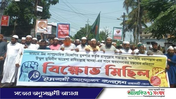 আজ শুক্রবার (১০ জুন২০২২) বাদে জুমা, ইসলামী আন্দোলন বাংলাদেশ রাঙ্গামাটি জেলা শাখা উদ্যোগে জেলা সভাপতি আলহাজ্ব জসিম উদ্দিন এর সভাপতিত্বে সম্প্রতি ভারতের উগ্র সাম্প্রদায়িক ক্ষমতাসীন দল বিজেপির মুখপাত্র নুপুর শর্মা ও মিডিয়া সেল প্রধান নবীন জিন্দাল মহানবী হযরত মুহাম্মদ সা. ও উম্মাহাতুল মুমিনীন হযরত আয়েশা সিদ্দীকা রাযি. কে নিয়ে চরম অশ্লীল ও অবমাননাকর মন্তব্যের প্রতিবাদে