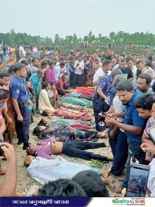 পঞ্চগড়ের বোদা উপজেলায় ইঞ্জিনচালিত নৌকা ডুবে ২৪ জনের মৃত্যু হয়েছে। রোববার (২৫ সেপ্টেম্বর) দুপুরের দিকে উপজেলার মারেয়া ইউনিয়নের আউলিয়ার ঘাট এলাকার করতোয়া নদীতে শতাধিক যাত্রী নিয়ে নৌকাটি ডুবে যায়।কতজন সাঁতরে পার হয়েছে আর কতজন নিখোঁজ রয়েছে তার সঠিক কোন তথ্য পাওয়া যায়নি।তবে স্থানীয় ও ফায়ার সার্ভিসের কর্মীরা ২৪ জনের লাশ উদ্ধার করেছেন। নৌযাত্রীদের এমন মর্মান্তিক মৃত্যুতে শোকের কালো মেঘে ছেয়ে গেছে পঞ্চগড়ের আকাশ। সেখানে চলছে শোকের মাতম।