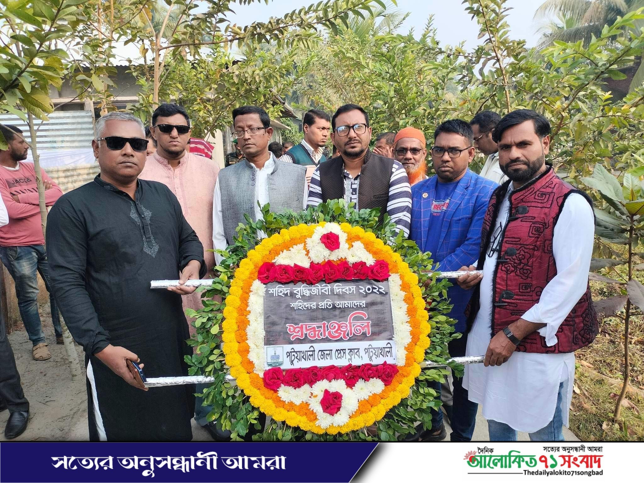 পটুয়াখালী জেলায় নানা আয়োজনের মধ্যদিয়ে পটুয়াখালীতে বীর শহীদ বুদ্ধিজীবী দিবস উদযাপন করা হয়েছে। বুধবার ১৪ ডিসেম্বর সকাল ৯.৩০ মিনিটের সময় শহরে পুরাতন জেলখানার অভ্যান্তরের গণকবরে জেলা প্রশাসন, পুলিশ বিভাগ, পটুয়াখালী জেলা প্রেসক্লাব, জেলা আওয়ামীলীগ, পৌরসভা, জেলা পরিষদ সহ বিভিন্ন সংগঠনের পক্ষ থেকে শ্রদ্ধা নিবেদন করা হয়। এ সময় পটুয়াখালী সংরক্ষিত নারী সংসদ সদস্য কাজী কানিজ সুলতানা হেলেন, জেলা প্রশাসক মোঃ শরীফুল ইসলাম, পুলিশ সুপার মোঃ সাইদুল ইসলাম, জেলা পরিষদ চেয়ারম্যান এড.হাফিজুর রহমান, পৌর মেয়র মহিউদ্দিন আহম্মেদ সহ জেলা আওয়ামীলীগ ও এর অঙ্গ সহযোগী সংগঠনের নেতৃবৃন্দরা এসময় উপস্থিত ছিলেন।