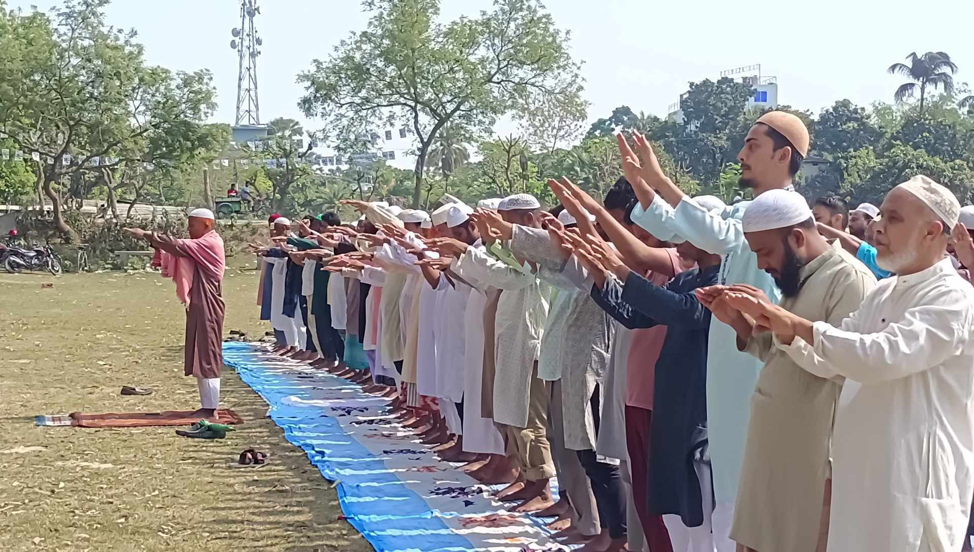 মাওলানা আব্দুল মুকিমের ইমামতিতে ইস্তিসকার দুই রাকাত নামাজ আদায় করেন মুসল্লিরা। এরপর দেশ ও জাতির মঙ্গল কামনায় এবং সকল মুসলমানদের জন্য দোয়া করা হয়।