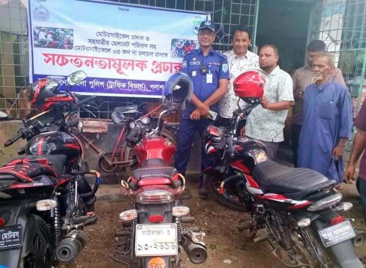 গাইবান্ধা জেলা পুলিশ ও ট্রাফিক বিভাগের আয়োজনে পলাশবাড়ীতে সচেতনতা মূলক লিফলেট বিতরণ ও মোটর সাইকেল চালাক এবং সহযাত্রীদের হেলমেট পরিধান বিষয়ে লিফলেট বিতরণ পরামর্শ প্রদান করা হয়। মঙ্গলবার দুপুরে রংপুর ঢাকা মহাসড়কের পলাশবাড়ীতে চালকদের প্রতি পরামর্শ প্রদান করেন টিআই মনজুর হোসেন এবং সার্জেন্ট নূরেশেফা। তাদের পরামর্শের মাঝে ছিল গাড়ি চলাকালে এয়ারফোন ও মোবাইল ফোনে কথা বলবেন না। সড়ক পরিবহন আইন, ট্রাফিক সাইন এবং ট্রাফিক পুলিশের নির্দেশ মেনে চলবেন। বৈধ ড্রাইভিং লাইসেন্স ছাড়া গাড়ি চালাবেন না, চালকরা সিট বেল বেঁধে গাড়ি চালাবেন, রাস্তায় যত্রতত্র গাড়ি থামাবেন না,