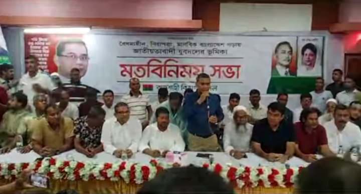 ৩ সেপ্টেম্বর (মঙ্গলবার) বেলা ১২ টায় রাজশাহী সাহেব বাজার মুনলাইট গার্ডেনে রাজশাহী বিভাগীয় যুবদল আয়োজিত মতবিনিময় সভা অনুষ্ঠিত হয়। রাজশাহী মহানগর যুবদলের আহ্বায়ক মাহাফুজুর রহমান রিটনের সভাপতিত্বে সদস্য সচিব রফিকুল ইসলাম রবি’র সঞ্চালনায় মতবিনিময় সভায় প্রধান অতিথি হিসেবে উপস্থিত ছিলেন বাংলাদেশ জাতীয়তাবাদী যুবদল কেন্দ্রীয় নির্বাহী কমিটি সাধারণ সম্পাদক মোহাম্মদ নূরুল ইসলাম নয়ন। এসময় রাজশাহী বিভাগের প্রতিটি জেলা যুবদলের আহ্বায়ক ও নেত্রীবৃন্দসহ প্রায় হাজার হাজার নেতাকর্মী উপস্থিত ছিলেন।#
