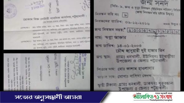 কোর্ড এফিডেভিটে স্বপ্না আক্তারের ১৮ বছর সম্পুর্ন হলেও ইটবাড়িয়া ইউনিয়নের কচাবুনিয়া মাধ্যমিক বিদ্যালয়ের প্রধান শিক্ষকের সাথে মুঠোফোনে কথা বলে জানাগেছে স্বপ্না আক্তার তার বিদ্যালয়ের নবম শ্রেনির ছাত্রী।উল্লেখ কোর্ট এফিডেভিট জন্মসনদে -১৪/০১/২০০৩ ইং এবং বিদ্যালয়ের জন্মসনদে ১৫/১২/২০০৬ ইং তারিখ উল্লেখ রয়েছে।