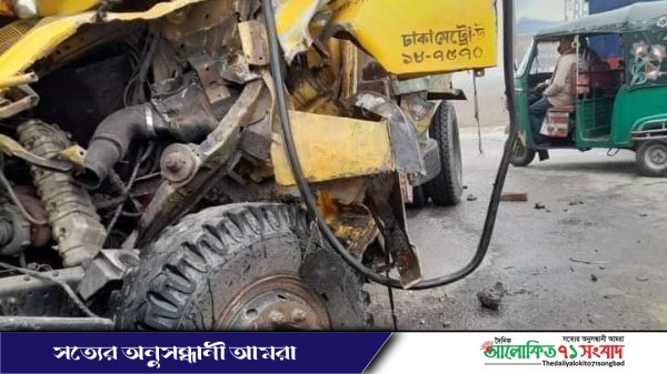 হবিগঞ্জের মাধবপুরে ঢাকা-সিলেট মহাসড়কে মাটি ভর্তি একটি ট্রাকের সাথে অপর দুই ট্রাকের ত্রিমুখী সংঘর্ষে ঘটনাস্থলেই এক চালক নিহত ও হেলপার আহত হয়েছে।স্থানীয় সূত্রে জানা যায়,বুধবার সকাল ৭টার দিকে ঢাকা সিলেট মহাসড়কের জগদীশপুর মুক্তিযোদ্ধা চত্বরের নিকট সিলেটগামী মাটি ভর্তি একটি ট্রাকের সাথে অপর দুই বালূ ও পাথরভর্তি ট্রাকের ত্রিমুখী সংঘর্ষ হয়।এতে সিলেটগামী ট্রাকের চালক টাঙ্গাইল জেলার ঘাটাইল উপজেলার সাগরদিঘী গ্রামের মুসলিম উদ্দিন এর পুত্র মো:রবিউল(৪০)নিহত হয় এবং ট্রাকের হেলপার ময়মনসিংহ জেলার ফুলবাড়িয়া উপজেলার এনায়েতপুর গ্রামের মৃত ফারুক মিয়ার পুত্র বাবু মিয়া(২০)গুরুতর আহত হয়।শায়েস্তাগঞ্জ হাইওয়ে থানার ওসি মাঈনুল ইসলাম ঘটনার সত্যতা নিশ্চিত করে বলেন,নিহত ব্যক্তি শায়েস্তাগঞ্জ হাইওয়ে পুলিশের হেফাজতে আছে এবং আহত ব্যক্তি মাধবপুর উপজেলা স্বাস্থ্য কমপ্লেক্সে চিকিৎসাধীন রয়েছে।দুইটি ট্রাক আটক আছে অপর একটি ট্রাক পালিয়েছে।আইনানুগ ব্যবস্থা গ্রহণের প্রস্তুতি চলছে।