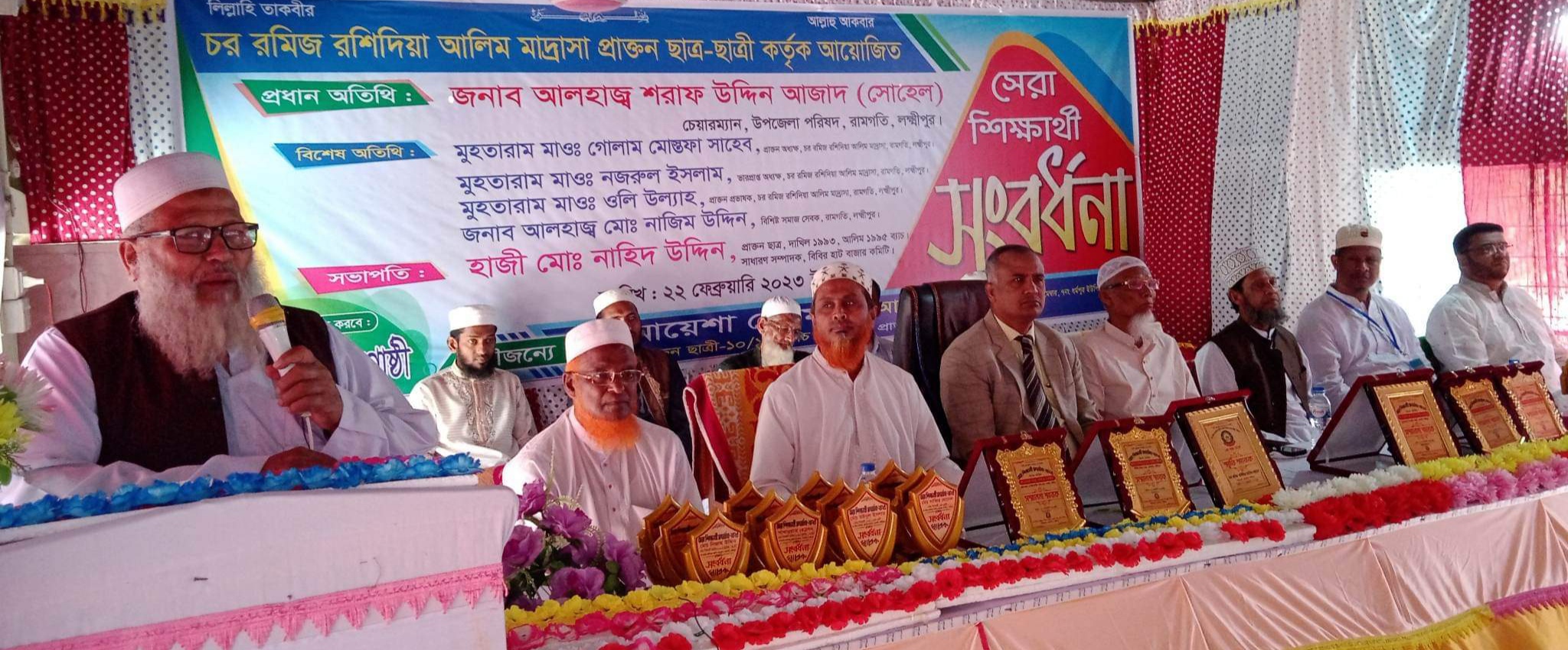 লক্ষ্মীপুরের রামগতি উপজেলার বিবিরহাট চর-রমিজ রশিদিয়া সিনিয়র আলিম মাদরাসাই সেরা শিক্ষার্থীদের সংবর্ধনা দেওয়া হয়।