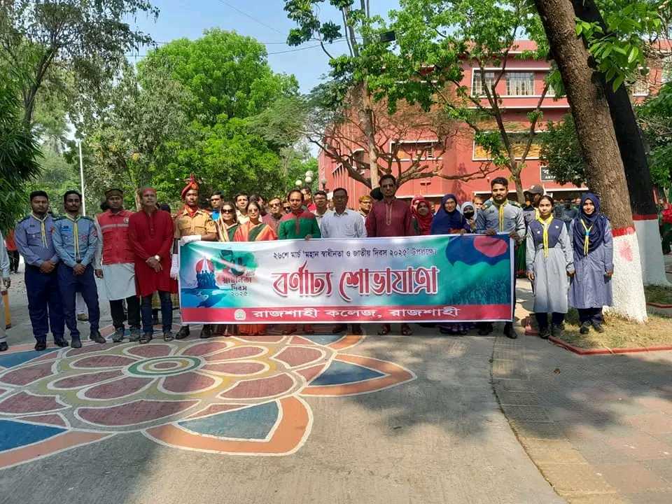 রাজশাহী কলেজে যথাযোগ্য মর্যাদার মধ্য দিয়ে মহান স্বাধীনতা ও জাতীয় দিবস ২০২৫ উদযাপিত হয়েছে। বুধবার (২৬ মার্চ) সকাল সাড়ে ৯টায় প্রশাসন ভবন থেকে একটি বর্ণাঢ্য শোভাযাত্রা শুরু হয়ে কলেজ ক্যাম্পাস প্রদক্ষিণ করে। শোভাযাত্রা শেষে ক্যাম্পাসে ১ মিনিটের ব্ল্যাকআউট কর্মসূচি পালন করা হয় এবং শহিদ মিনারে পুষ্পস্তবক অর্পণ করা হয়। এরপর কলেজ অডিটোরিয়ামে মহান স্বাধীনতা ও জাতীয় দিবস উপলক্ষে এক আলোচনা সভা ও পুরস্কার বিতরণী অনুষ্ঠান অনুষ্ঠিত হয়।