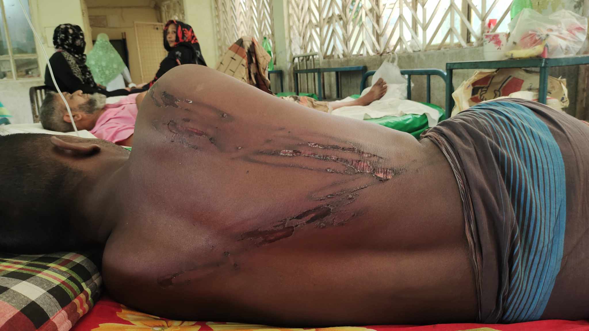 যুবক আরো জানান ৫/৭জন ব্যাক্তি মাটিতে শোয়ায়ে তার হাত-পা চেপে ধরে থাকে এবং হাতে থাকা লোহার রড আগুনে গরম করে হত্যার উদ্দেশ্যে তার পিঠে একাধিক স্থানে ছেকা দিয়ে রক্তাক্ত গুরুতর জখম করে।
