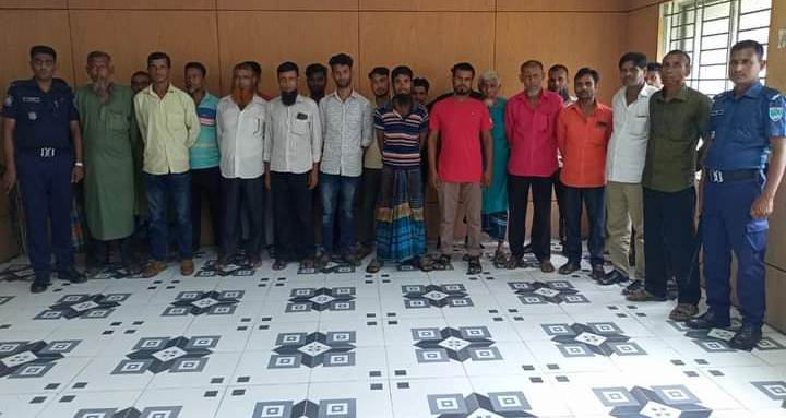 নড়াইল লোহাগড়া থানা পুলিশের অভিযানে ২২(বাইশ) জন আসামি গ্রেফতার হয়েছে। গত ২৪ ঘন্টায় বিভিন্ন এলাকা থেকে গ্রেফতারি পরোয়ানামূলে তাদের গ্রেফতার করা হয়। বিষয়টি নিশ্চিত করেছেন লোহাগড়া থানার ভারপ্রাপ্ত কর্মকর্তা (ওসি)মো:নাসির উদ্দিন। গ্রেফতারকৃত আসামিরা হলেন- নড়াইল লোহাগড়া উপজেলার চাপুলিয়া গ্রামের ইব্রাহিম মোল্যা, উসমান মোল্যা, ফারুক মোল্যা, হাসমত মোল্যা, হিরু শেখ, শাফায়েত মোল্যা, ইকরাম শিকদার, সাদ্দাম শিকদার, সাজ্জাদ মোল্যা, সুজন মোল্যা, নজরুল মোল্যা, মিন্টু মোল্যা, মিলন মোল্যা, আমির মোল্যা, জমির মোল্যা, গনি মোল্যা, মাহাবুব মোল্যা, কামরুল মোল্যা, খায়ের শেখ, সিরাজ শেখ, তারা মিয়া এবং ওহিদুল মোল্যা। লোহাগড়া থানার অফিসার ইনচার্জ (ওসি)মো:নাসির উদ্দিন এর তত্ত্বাবধানে এসব আসামিদের গ্রেফতার করা হয়। আসামিদের বিজ্ঞ আদালতে সোপর্দ করা হয়েছে। নড়াইল জেলার সুযোগ্য পুলিশ সুপার (মোসা:সাদিরা খাতুনের) নির্দেশনায় অপরাধ নিয়ন্ত্রণ ও আইনশৃঙ্খলা রক্ষায় জেলা পুলিশ সর্বদা তৎপর রয়েছে।