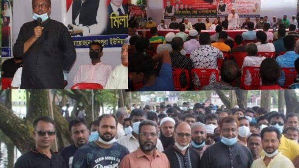 বঙ্গবন্ধু শেখ মুজিবুর রহমানের স্মরনে জাতীয় শোক দিবস উপলক্ষে  গতকাল মঙ্গলবার (১৮ আগস্ট) বাদ জোহর উপজেলার শম্ভুপুরা ইউনিয়নের ৫ নং ওয়ার্ড আওয়ামী লীগ, যুবলীগ ছাত্রলীগ, স্বেচ্ছাসেবক লীগ ও সহযোগী সংগঠনের উদ্যোগে এই মিলাদ মাহফিল, দোয়া, আলোচনা সভা ও কাঙ্গালি ভোজ আয়োজনে মেম্বার নাছির উদ্দিন নেতাকর্মী নিয়ে অংশগ্রহণ সহ আয়োজিত আলোচনা সভা ও কাঙ্গালী ভোজের পুরো ব্যয় ভার বহন করেন।