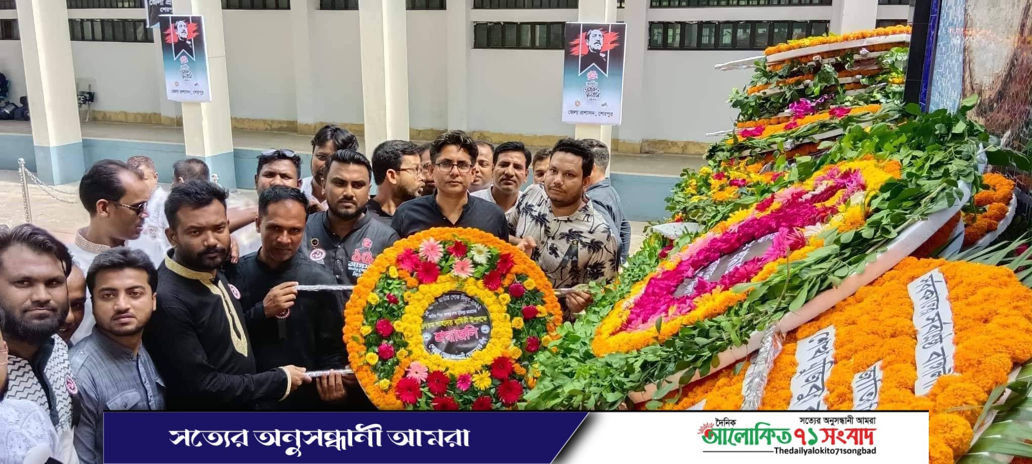 জাতীর জনক বঙ্গবন্ধু শেখ মুজিবুর রহমান এর ৪৭তম শাহাদাত বার্ষিকী ও জাতীয় শোক দিবস উপলক্ষে জাতীয় ও দলীয় পতাকা অর্ধনমিত করন এবং কালো পতাকা উত্তোলন শেষে জাতির জনক বঙ্গবন্ধু শেখ মুজিবুর রহমান এঁর প্রতিকৃতিতে শ্রদ্ধাঞ্জলী নিবেদন করেন এ সময় উপস্থিত ছিলেন বাংলাদেশ আওয়ামী স্বেচ্ছাসেবক লীগ শেরপুর জেলা শাখার