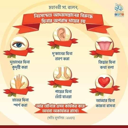 ●● হাদীসের ভাষায় যিনা বহু প্রকারে বিভক্ত। যেমনঃ