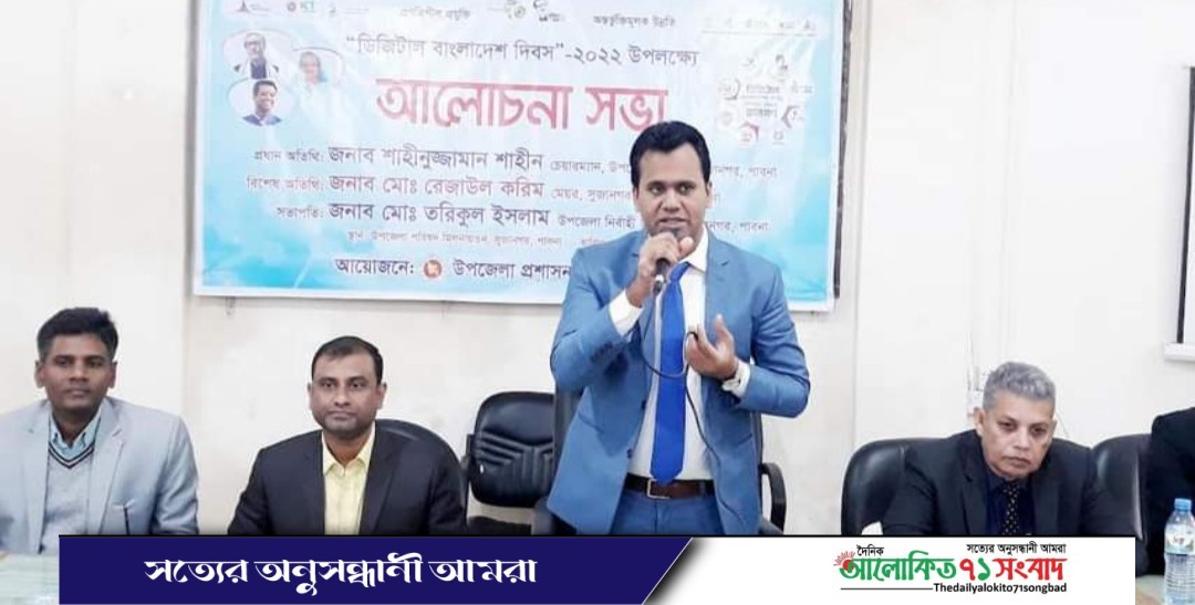 ‘প্রগতিশীল প্রযুক্তি,অন্তর্ভুক্তিমূলক উন্নতি’ এই প্রতিপাদ্য নিয়ে পাবনার সুজানগরে নানা আয়োজনে ডিজিটাল বাংলাদেশ দিবস-২০২২ পালিত হয়েছে। এ উপলক্ষ্যে সোমবার উপজেলা পরিষদ হলরুমে সুজানগর উপজেলা প্রশাসনের আয়োজনে আলোচনা সভা অনুষ্ঠিত হয়। উপজেলা নির্বাহী অফিসার মো.তরিকুল ইসলামের সভাপতিত্বে অনুষ্ঠিত ডিজিটাল বাংলাদেশ দিবসের আলোচনা সভায় বক্তব্য রাখেন উপজেলা কৃষি অফিসার কৃষিবিদ রাফিউল ইসলাম। অনুষ্ঠানে উপজেলা মাধ্যমিক শিক্ষা অফিসার মো.সাইফুল ইসলাম,উপজেলা একাডেমিক সুপারভাইজার মনোয়ার হোসেন, উপজেলা সমবায় অফিসার দেলোয়ার হোসেন, সুজানগর প্রেসক্লাবের সাধারণ সম্পাদক ও দৈনিক যুগান্তরের উপজেলা প্রতিনিধি এম এ আলিম রিপন সহ স্থানীয় বিভিন্ন পর্যায়ের ব্যক্তিবর্গ উপস্থিত ছিলেন।