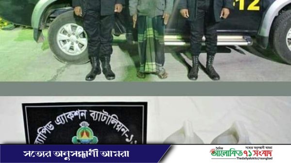 সিরাজগঞ্জে র্যাব-১২’র অভিযানে ২৯ লিটার চোলাই মদসহ ১জন মাদক ব্যবসায়ীকে আটক করা হয়েছে। গত বুধবার( ৯ফেব্রয়ারী) বিকেল ৪টার সময় গোপন সাংবাদের ভিত্তিতে র্যাব-১২ এর স্পেশাল কোম্পানীর একটি চৌকষ আভিযানিক দল সিরাজগঞ্জ জেলার সলঙ্গা থানাধীন চৈত্রহাটি গ্রামস্থ সুতাহাটি বাজারের ২০০ গজ পূর্বে পুকুরের পার্শ্বে এক মাদক বিরোধী অভিযান চালিয়ে ২৯লিটার দেশীয় চোলাই মদসহ সলঙ্গা থানার ক্ষুদ্র শিমলা গ্রামের মৃত আঃ কাদেরের ছেলে নূর হোসেন নুরু(৬৫) কে আটক করা হয়েছে। এ সময় তাহার নিকট থেকে মাদক ক্রয়-বিক্রয়ের কাজে ব্যবহৃত ১টি মোবাইল ফোন জব্দ করা হয়।