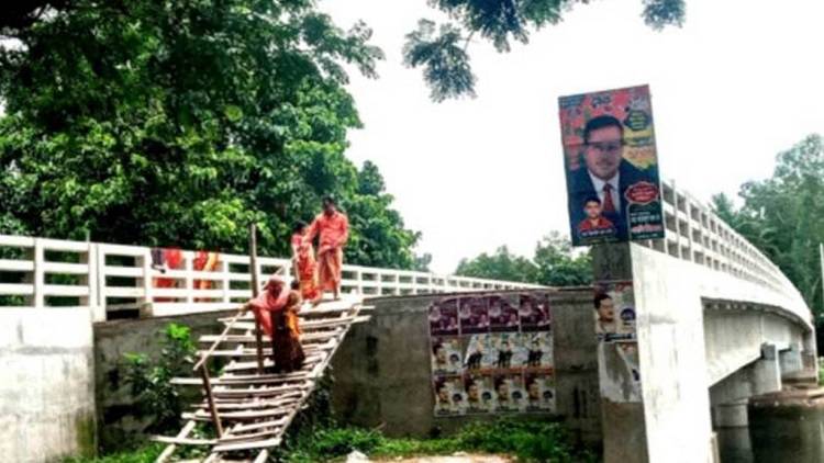 সেতু নির্মাণের পর থেকেই এ সেতুতে প্রতিদিন হাজার হাজার মানুষ মই বেয়ে চলাচল করে। ৭ কোটি টাকা ব্যয়ে নির্মিত কংক্রিটের সেতুর দুই পাশে সংযোগ সড়ক না থাকায় সেটি ব্যবহারে বিড়ম্বনা পোহাতে হচ্ছে স্থানীয়দের। ফলে ঝুঁকি নিয়ে মই দিয়ে উল্লাপাড়া-কালিগঞ্জ সড়কের এই সেতু দিয়ে প্রতিদিন ভোগান্তিতে চলতে হয় এলাকাবাসীর। শিগগিরই সংযোগ সড়ক নির্মাণের দাবি জানিয়েছেন ভুক্তভোগীরা।