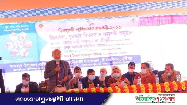 “পুষ্টি, মেধা, দারিদ্র বিমোচন, প্রাণিসম্পদ প্রদর্শণীর আয়োজন” এই শ্লোগানে মুন্সীগঞ্জের সিরাজদিখানে প্রাণিসম্পদ প্রদর্শণী অনুষ্ঠিত হয়েছে। প্রাণিসম্পদ অধিদপ্তর কতৃক এবং উপজেলা প্রাণিসম্পদ দপ্তর ও ভেটেরিনারী হাসপাতালের আয়োজনে, প্রাণিসম্পদ ও ডেইরী উন্নয়ন প্রকল্পের সহযোগিতায় প্রদর্শণী অনুষ্ঠিত হয়। গতকাল বুধবার দিনব্যাপী উপজেলার মালখানগর হাই স্কুল ও কলেজ মাঠে এ প্রদর্শণী অনুষ্ঠানে প্রধান অতিথি হিসেবে উপস্থিত ছিলেন উপজেলা পরিষদ চেয়ারম্যান হাজী মহিউদ্দিন আহমেদ। উপজেলা নির্বাহী কর্মকর্তা সৈয়দ ফয়েজুল ইসলামের সভাপতিত্বে স্বাগত বক্তব্য রাখেন উপজেলা প্রাণিসম্পদ কর্মকর্তা ডাঃ শবনম সুলতানা।