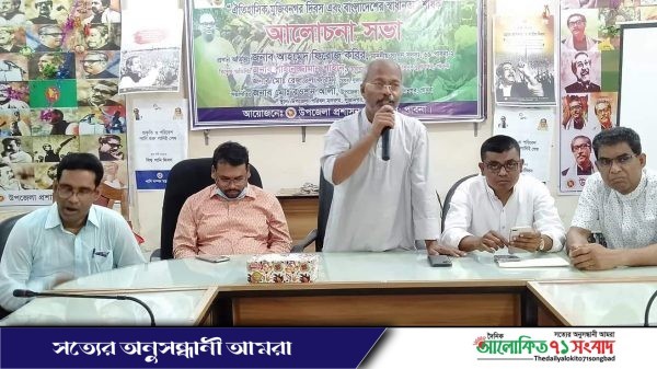 উপজেলা প্রশাসনের আয়োজনে, “ঐতিহাসিক মুজিবনগর দিবস ও বাংলাদেশের স্বাধীনতা’ শীর্ষক আলোচনা সভা অনুষ্ঠিত হয়েছে। রোববার দুপুরে পাবনার সুজানগর উপজেলা পরিষদের হল রুমে ঐতিহাসিক মুজিবনগর দিবস ও বাংলাদেশের স্বাধীনতা’ শীর্ষক আলোচনা সভা অনুষ্ঠিত হয়। আলোচনা সভায় প্রধান অতিথির বক্তব্য দেন, পাবনা -২ আসনের সংসদ সদস্য আহমেদ ফিরোজ কবির। বিশেষ অতিথির বক্তব্য দেন, উপজেলা পরিষদের চেয়ারম্যান শাহীনুজ্জামান শাহীন, পৌরসভার মেয়র রেজাউল করিম রেজা। উপজেলা নির্বাহী অফিসার রওশন আলীর সভাপতিত্বে আরো বক্তব্য দেন,