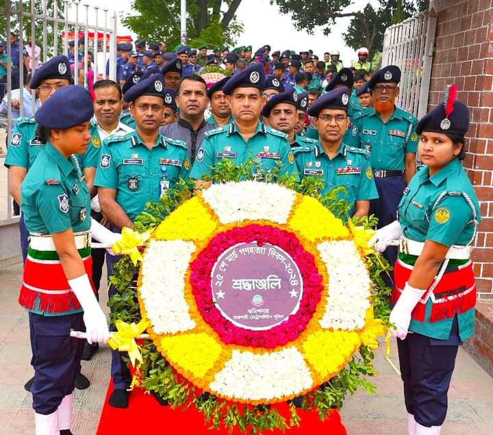 আজ ভয়াল কালরাত, ২৫ মার্চ গণহত্যা দিবস। দিনটির স্মরণে আরএমপি’র পুলিশ কমিশনার জনাব বিপ্লব বিজয় তালুকদার, বিপিএম সকাল ১০ টায় রাজশাহী শহর রক্ষা বাঁধের ‘টি-গ্রোয়েন’ লাগোয়া বাবলাবনে বধ্যভূমি স্মৃতিসৌধে পুষ্পস্তবক অর্পণের মাধ্যমে সকল শহীদের প্রতি বিনম্র শ্রদ্ধা জ্ঞাপন করেন।