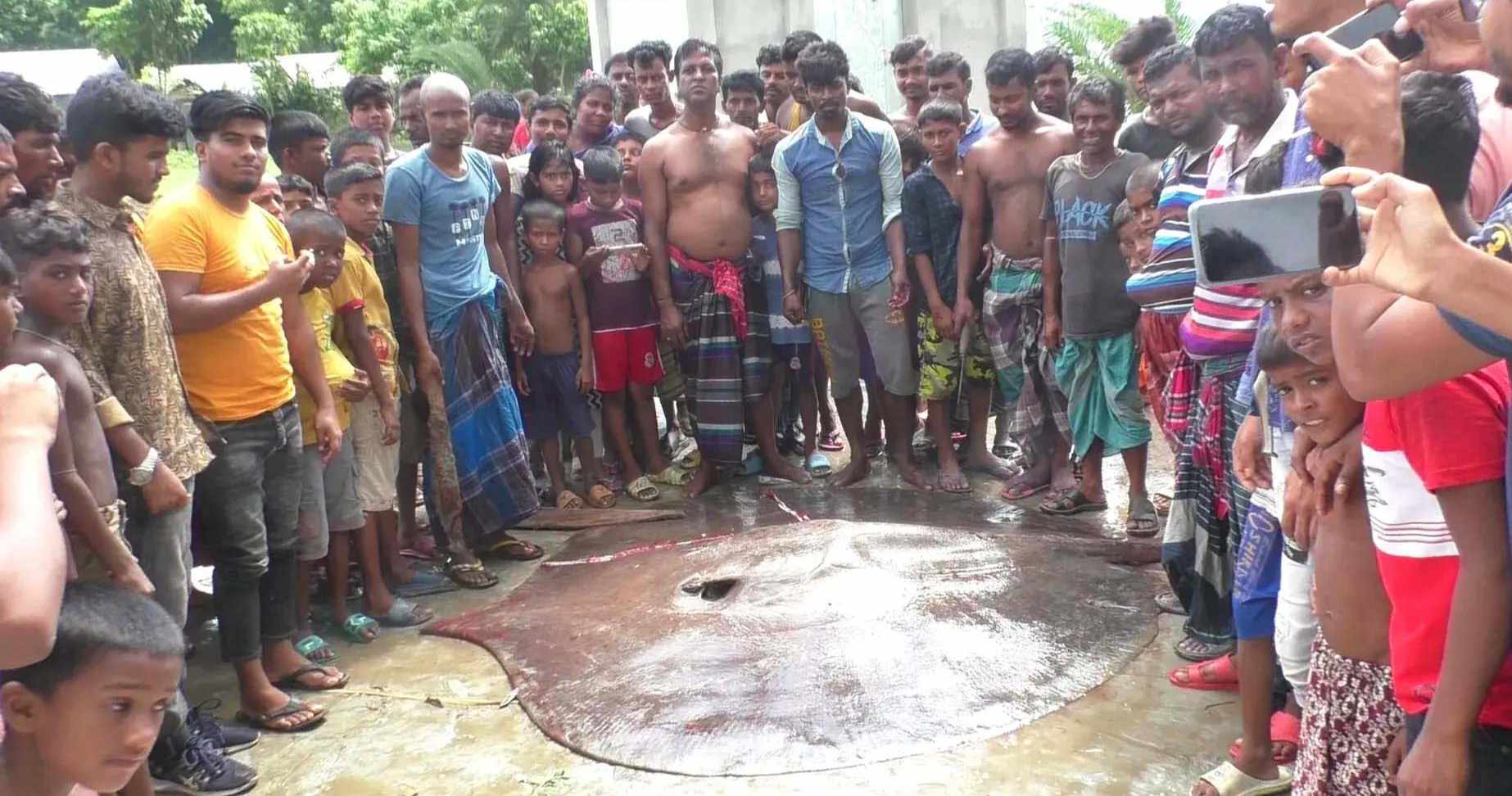 স্থানীয়রা জানায়,শনিবার সকালে পাইড় জাল ওই স্থানে ফেললে বিশাল আকৃতির শাপলাপাতা মাছটি জেলের জালে। এখবর ছড়িয়ে পড়লে শত শত মানুষ বিশাল এ মাছটি দেখতে ভিড় জমায় মহাজন উত্তর পাড়া শ্মশ্মানঘাটে। তাদের ধারনা মাছটি ৫ মন ওজন হবে। উংসুক এলাকাবাসী খাওয়ার জন্য মাছটি ৮০ হাজার টাকা কিনে ভাগবাটোয়ারা করে নেয়। পরে ৬শ টাকা কেজি দরে ভাগবাটোয়ারা করা হয়।